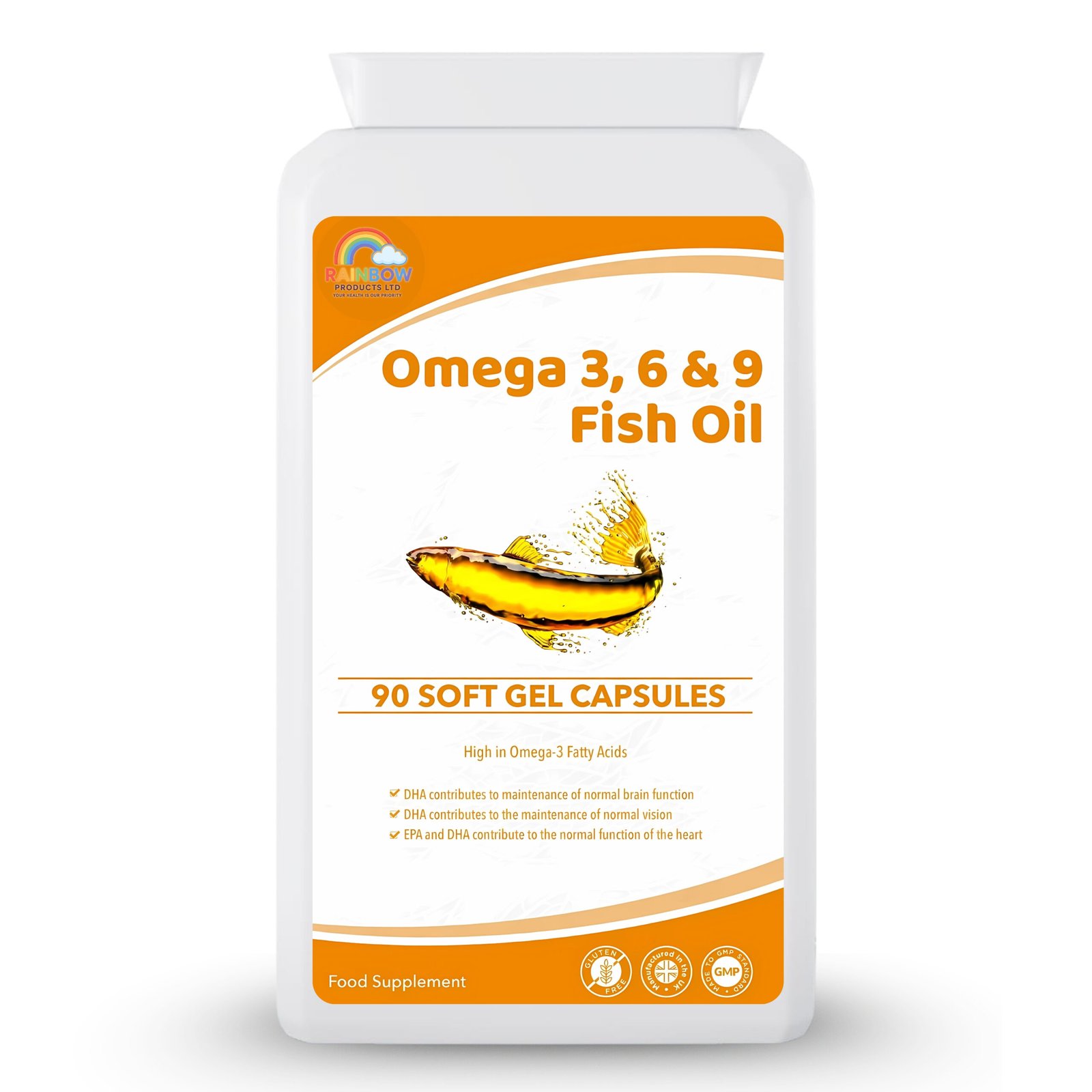 Omega 3, 6 and 9 Fish Oil softgels provide a balanced blend of essential fatty acids to support everyday wellbeing. DHA helps maintain normal brain function and vision, while EPA and DHA together contribute to the normal function of the heart.